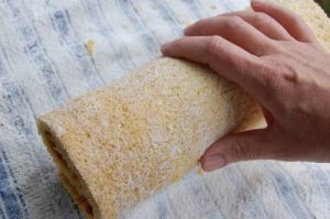 - We cool the finished roll to room temperature and sprinkle icing sugar.