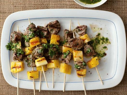 - Шашлычки из говядины с ананасом и соусом из петрушки