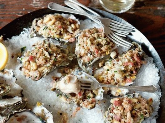 Bobby combines grilled oysters with a simple pancetta sauce, basil and shallots to emphasize smoked woody the aroma.