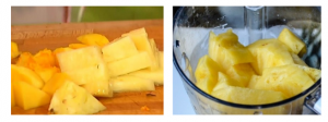 - Canned pineapple and peaches are decanted from syrup, put them in a blender and grind.